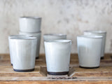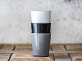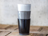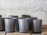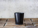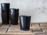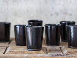 This handmade ceramic coffee cups are made with a glossy black glaze on black clay,. Made by slip casting technique. Each cup is treated separately and is made by hand in Jaffa, Israel.