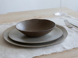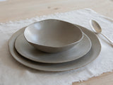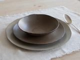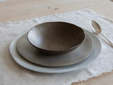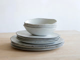 Each serving plate undergoes a unique process where the liquid clay is cast into a slab by free hand.
