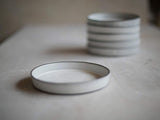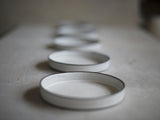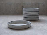 This handmade ceramic plate is made of white matte glaze on black clay. Made with slip casting technique. Each plate is treated separately and is made by hand in Jaffa, Israel.