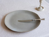 Each serving plate undergoes a unique process where the liquid clay is cast into a slab by free hand.