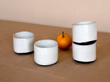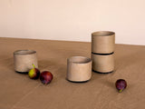 This set includes 2 or 4 ceramic cups. It is made in slip casting technique used a black clay and dipped in a matte glaze.