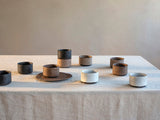 This set includes 2 or 4 ceramic cups with a minimalist and modern touch. It is made of black clay and dipped in a matte glaze.