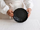 Handcrafted from black clay and finished with a matte glaze, this bowl features a soft scalloped edge and subtle texture. Its organic form brings a delicate, refined touch to everyday serving.