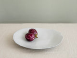 .צלחת עגולה מקרמיקה בעבודת יד עם שוליים לא סימטריים הצלחת עשויה מחימר שחור בזיגוג לבן מט