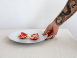 כל צלחת נוצרה ומיוצרת בעבודת יד בסטודיו ביפו, ולכן כל פריט הוא ייחודי, עם הבדלים עדינים בצורה, בגוון ובמרקם